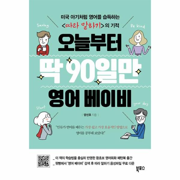영어회화 학습의 최강자가 등장했다. 따라 말하기다. 얼마 전까지 영어회화를 이끌었던 키워드는 ‘암기’였다. 언어는 습득하는 것이므로 이해보다 암기가 더 중요하다는 생각에서 시작된 방법이다. 500문장 암기, 책 한 권 암기, 300패턴 암기 등이 좋은 예다. 그런데 <오늘부터 딱 90일만 영어 베이비>는 억지로 외울 필요가 없다고 말한다.