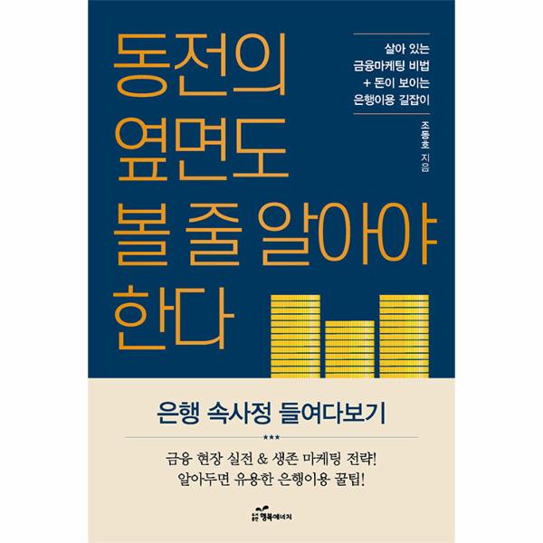 책 『동전의 옆면도 볼 줄 알아야 한다』는 기존에 출간된 금융마케팅 책들과는 확연히 차별화된다. 단순히 마케팅 이론만을 열거해 놓는 대신, 30년 가까이 금융 현장의 최전방을 지켜온 저자만의 살아 있는 마케팅 비법에 더해, 모든 은행 고객을 위한 유용한 팁들이 책 가득 담겨 있기 때문이다.