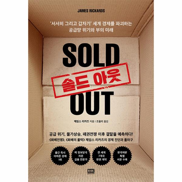 〈뉴욕 타임스〉 베스트셀러 《화폐전쟁》, 《화폐의 몰락》의 저자이자 미국 정보당국 금융전문가로 활약한 제임스 리카즈가 신간 《솔드 아웃》으로 돌아왔다. 전작 《신 대공황》에서 팬데믹 초기의 혼돈과 경제를 진단했다면 신간 《솔드 아웃》에서는 2019년 이후 격화된 공급사슬 붕괴 과정과 원인을 총체적으로 살펴보고 해결 방안과 미래 경제를 전망한다. 제임스 리카즈는 지금의 공급 위기가 해결되기까지 약 10년 이상이 소요될 것이라고 주장한다. 공급사슬이란 꽃병과 같아서, 한번 붕괴하면 새로 만들어야 하기 때문이다.