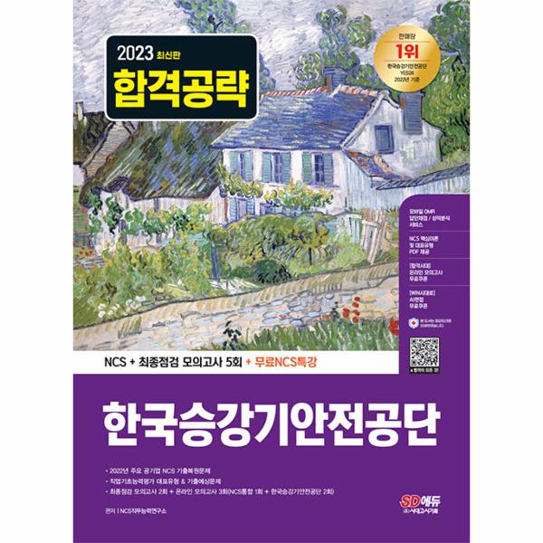 한국승강기안전공단 필기시험 합격을 위해 SD에듀에서는 2023년 상반기 채용을 대비하여 한국승강기안전공단 최신 필기전형 맞춤형 문제로 구성한 『2023 최신판 한국승강기안전공단 NCS 기출예상문제+최종점검 모의고사 5회+무료NCS특강』을 출간하였다. 상세한 해설로 혼자서도 학습이 가능하도록 하였으며, 온라인 모의고사를 무료로 응시할 수 있는 쿠폰을 제공하여 한국승강기안전공단 문제 유형에 대한 연습과 함께 자신의 실력을 최종 점검할 수 있도록 하였다.