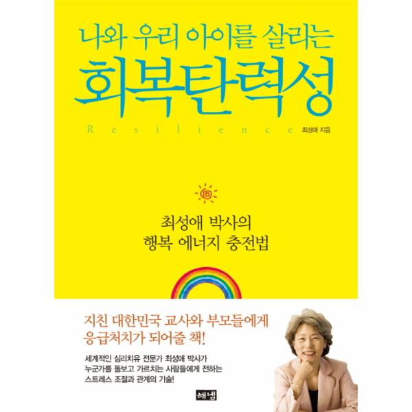 이에 세계적인 심리치유 전문가 최성애 박사는 회복탄력성의 향상이야말로 가장 시급한 조치임을 강조하고, 신간『나와 우리 아이를 살리는 회복탄력성』을 통해 교사와 부모들이 고단한 일상에서 스트레스를 조절하고 행복 에너지를 기르는 방법을 제시한다.