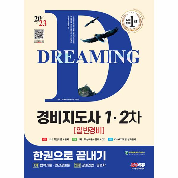 경비지도사 시험의 응시율이 해마다 높아지고 있고 2차시험의 상대평가로 인한 경쟁도 치열해지고 있는 상황에서, 수험생들이 보다 쉽고 완벽하게 자격증을 취득할 수 있도록 SD에듀 경비지도사 교수진이 “2023 SD에듀 경비지도사 한권으로 끝내기 [일반경비]”를 출간하게 되었습니다. 18년간 누적 판매량 1위에 빛나는 SD에듀 경비지도사 시리즈를 통해 합격의 기쁨을 누리시길 바랍니다.