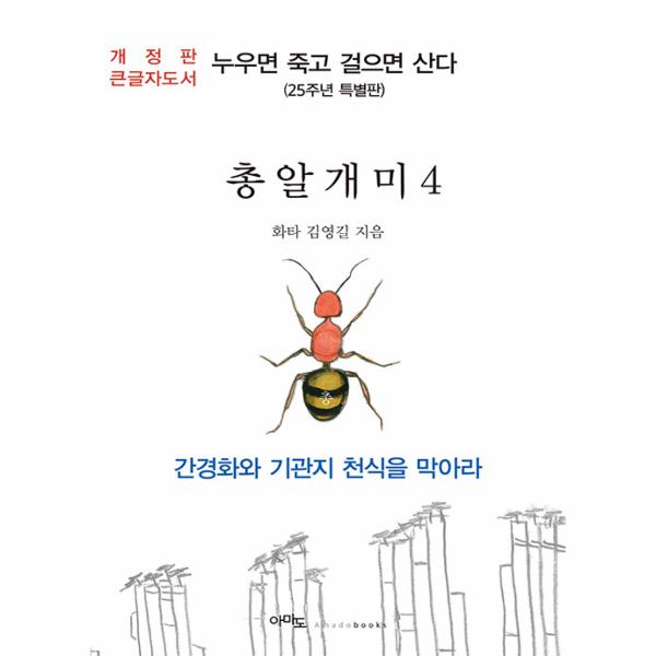 「총알개미4」개정판(큰글자도서은 기존 내용에을 보완하고 보충해서 큰글자도서로 보기 좋게 출간하게 되었으며 간경화와 기관지 천식과 관련된 병증으로부터 벗어난 사례를 모은 책이다. 이 책은 불치병을 예방하거나 불치병을 이겨낸 사람들의 기록이며 걷기와 자연생활로 어려움을 극복한 사람들의 이야기이다. 소를 물가에 끌고 가는 것은 어렵지 않다. 그러나 물을 먹는 것은 언제나 소다.
