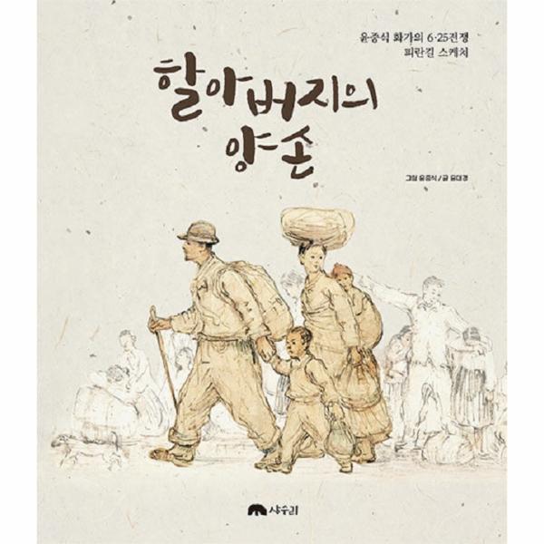 『할아버지의 양손』은 이 책의 저자인 윤대경 선생님이 직접 겪은 실화입니다. 유망한 화가였던 아버지와 함께 전쟁을 피해 피란길에 오른 윤 선생님 가족은 평양, 개성, 서울, 부산으로 내려가며 이루 말할 수 없는 고통을 겪었습니다. 공습을 피해 도망치다 황망 중에 어머니, 누나와 헤어져야 했고, 먹을 게 없어서 굶어 죽어야 했던 젖먹이 동생, 부산에 도착해서야 간신히 죽 한 그릇을 얻어먹었던 기억 등. 윤 선생님은 네 살의 나이로 온갖 비극을 다 겪은 것입니다. 그땐 아직 어려서 후일 아버지에게서 들은 얘기들이 대부분이지만 전쟁은 인간이 겪는 최악의 모습으로 각인돼 있습니다. 모진 세월을 견딘 이 ‘네 살배기’ 코흘리개가 이제는 할아버지가 되어 전쟁의 참상을 증언하고 있습니다. 할아버지의 소망은 단 하나, 같은 민족끼리 싸우지 않고 평화롭게 사는 것입니다.