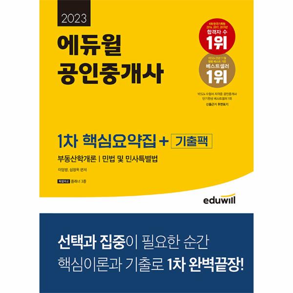 YES24 수험서 자격증 공인중개사 베스트셀러 1위 (2011년 12월, 2012년 1월, 12월, 2013년 1월~5월, 8월~12월, 2014년 1월~5월, 7월~8월, 12월, 2015년 2월~4월, 2016년 2월, 4월, 6월, 12월, 2017년 1월~12월, 2018년 1월~12월, 2019년 1월~12월, 2020년 1월~12월, 2021년 1월~12월, 2022년 1월~12월, 2023년 1월~4월 월별 베스트, 매월 1위 교재는 다름