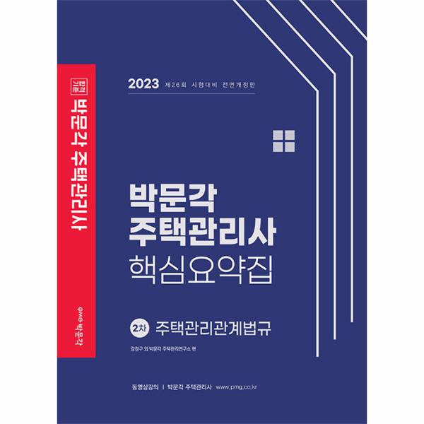 [2023 박문각 주택관리사 핵심요약집 2차 주택관리관계법규]는 2023년 제26회 주택관리사(보 자격시험을 대비하여 최근 개정된 법령을 빠짐없이 반영하였고, 많은 분량으로 인한 수험생들의 고충을 이해하여 출제경향을 파악하고 많은 법령의 내용 중 핵심적인 부분을 요약하여 시험을 준비하는 수험생들이 보다 쉽게 내용을 이해하고 정리하는 데 도움을 주기 위해 출간하였습니다.본서가 시험의 최종합격이라는 목표를 향해 매진하는 수험생 여러분의 든든한 동반자가 되기를 바라며, 합격의 기쁨이 함께 하시기를 기원합니다.