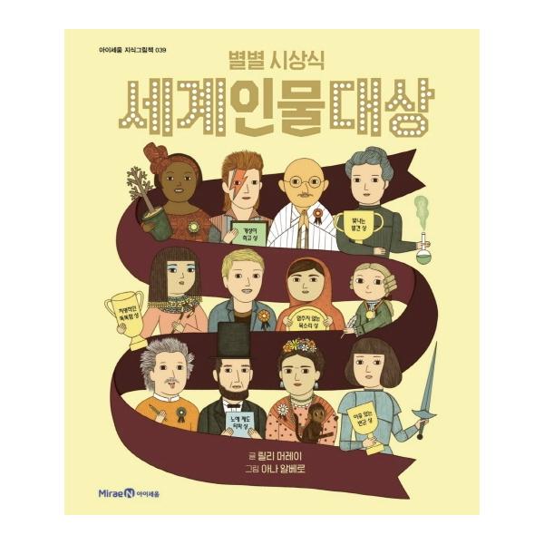 재미있는 상 이름에서 어린이로 하여금 인물의 특징을 유추할 수 있게 합니다. 인물의 초상화 밑에 붙어 있는 명언을 통