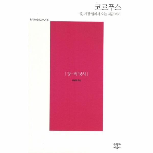 자크 데리다, 알랭 바디우와 더불어 프랑스에서 가장 중요한 철학자로 평가받는 장-뤽 낭시의 ‘몸’에 관한 독창적 사유를 담은 책이 문학과지성사에서 ‘파라디그마’ 시리즈로 출간되었다. 『코르푸스- 몸, 가장 멀리서 오는 지금 여기』(김예령 옮김가 그것. ‘코르푸스Corpus’라는 제목이 의미하는 바는 다름 아닌 ‘몸’이다.