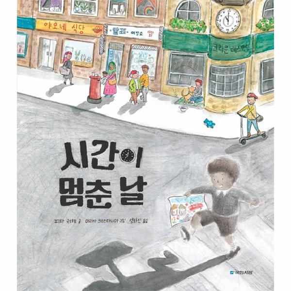 우리나라를 떠올릴 때 빠지지 않는 이미지가 있어요. 바로 ‘빨리빨리’예요. 주인공 조처럼 우리 아이들도 ‘빨리빨리’에서 벗어날 수가 없어요. 어른들은 아이들이 무언가를 하지 않는다거나 또는 천천히 해나가면 남들에게 뒤처질까 봐 계속해서 아이들을 재촉하곤 해요. 그래서 학교 가느라, 학원 가느라 바쁜 아이들에게 여유로움, 느긋함은 낯설기만 하지요. 그러나 다른 사람들의 속도에 휩쓸려 가면 진정으로 자신이 무엇을 하고 싶은 것인지, 어디로 가는 것인지 알지 못해요. ‘빨리빨리’가 당연해진 아이들은 뒤처지지 않기 위해 앞만 보고 달리게 되지요. 어디로 가는지, 나의 속도와는 맞는지 생각할 겨를도 없이요. 《시간이 멈춘 날》과 함께 몸과 마음을 들여다보는 여유로움을 느껴 보면 어떨까요? 물론, 어른들도 함께요. 빠르지는 않더라도 끝까지 나아갈 수 있는 자기만의 속도를 찾을 수 있을 거예요. 멋진 그림을 완성해 낸 조처럼요!