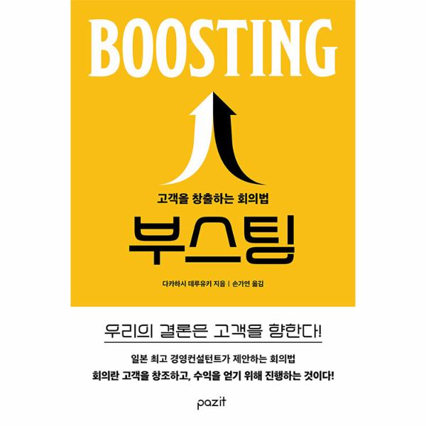 번역본의 제목이 된 ‘부스팅Boosting’은 회의를 통해서 구성원들의 사고를 촉진하고, 실행력을 높이고, 즐겁게 일할 수 있는 원동력을 제공한다는 의미를 담고 있습니다. 회의가 경영에 있어서 부스터Booster(촉진제로 작용해야 한다는 의미이고 이 책을 통해 그 방법을 알 수 있게 됩니다.