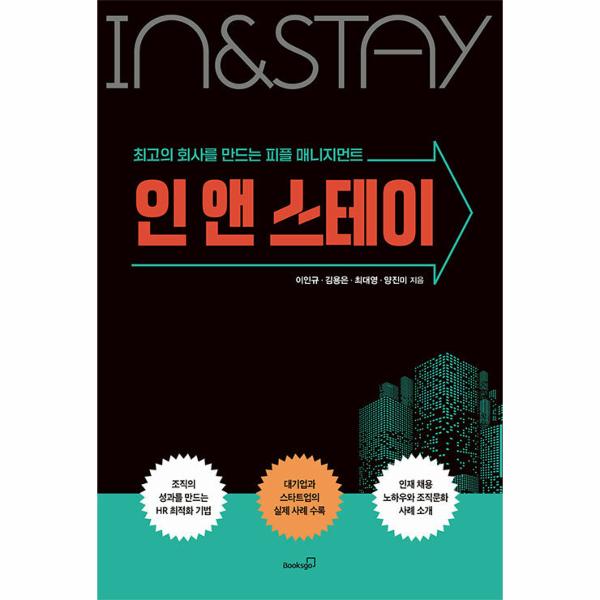 [인 앤 스테이]는 조직에서의 ‘사람’ 즉 ‘인재’의 중요성에 대해서 누구보다 잘 알고 있으며, 현업에서 실무 담당자로 경험하며, HR 담당자의 어려움과 고민을 풍부한 사례를 분석하며 인사이트로 제시하고 있다. 또한 스타트업과 대기업에서 인사 전문 담당자이자 조직문화 팀장으로 근무하며 다양한 업무와 경험치를 가지고 있는 이 책의 저자들은 각각의 전문 분야에 맞추어 실무자의 고민을 짚어주며 솔루션까지 제시한다.