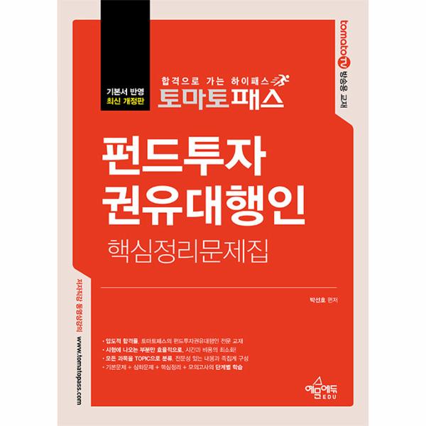 최신 기본서의 개정사항을 반영하여 시험에 나오는 부분만 골라 효율적으로 구성하였다. 모든 과목을 TOPIC으로 분류하여 효율적인 학습이 가능하도록 하였고, 문제풀이식 구성으로 수험생이 문제를 풀어보며 자연스럽게 이론을 학습할 수 있도록 하였다. 또한 ‘필수핵심정리’를 통해 헷갈리는 부분이나 다소 복잡한 개념을 한눈에 정리해주고 있으며, 시험 전 실력을 점검할 ‘최종모의고사’ 2회분을 수록하여 실제 시험에 완벽히 대비할 수 있다.
