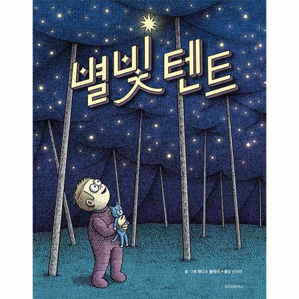 《별빛 텐트》는 선을 촘촘히 쌓아 올리는 강렬한 크로스 해칭 기법으로 담아낸 이야기입니다. 파란색과 보라색을 넓은 스펙트럼으로 구현한 몽환적인