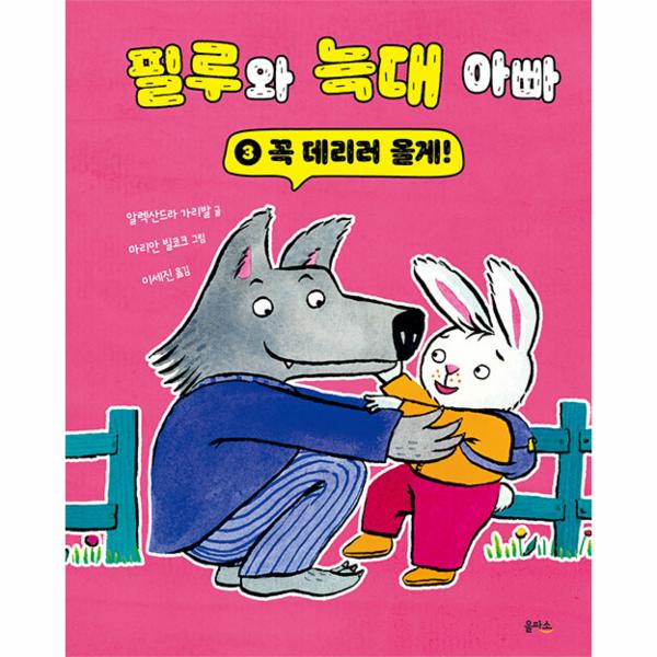 보통 그림책에서 늑대라는 동물은 그 본성 그대로 아주 험상궂고 악한 이미지로 그려집니다. 아기 돼지 삼 형제를 두려움에 떨게 만들기도 하고, 아기 염소들을 잡아먹기까지 하지요. 하지만 늑대와 아빠라는 조합만으로 이미 궁금증을 유발하는 『필루와 늑대 아빠』 시리즈에서는 전혀 새로운 모습의 늑대 캐릭터를 만날 수 있습니다. 우리에게 이미 익숙하고 각인된 사나운 늑대 캐릭터가 ‘아빠’라는 타이틀을 만나 전혀 색다른 존재로 표현되었습니다. 늑대의 본래 성격대로 캐릭터의 라인은 무심한 듯 거칠게 그려졌지만, 그 안을 메꾼 부드러운 수채화 표현은 부드럽고 따뜻한 늑대 아빠의 마음을 담고 있습니다. 늑대 아빠와 아기 토끼의 일상에 앞으로 어떤 행복한 순간들로 가득할지 기대하게 만듭니다. 또한, 어디로 튈지 모르는 사랑스럽고 귀여운 아기 토끼처럼 배경을 가득 채운 밝은 톤이 눈에 띕니다. 이는 늑대 아빠를 웃고, 울리고 또 가끔은 성가시게 하지만 결코 미워할 수 없는 아기 토끼의 사랑스러움을 닮았습니다.