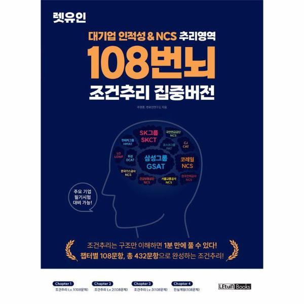 『108번뇌 조건추리 집중버전』은 초심자보다는 기본서와 모의고사 교재를 통해 인적성 추리를 어느 정도 익힌 분들을 대상으로 만들었다. 시중의 문제를 다 풀어 문제가 부족하신 분, 조건추리 실력을 집중하여 키우고 싶으신 분, 많은 조건추리 문제를 한 번에 접하고 싶으신 분들에게 108번뇌 도서를 추천한다.