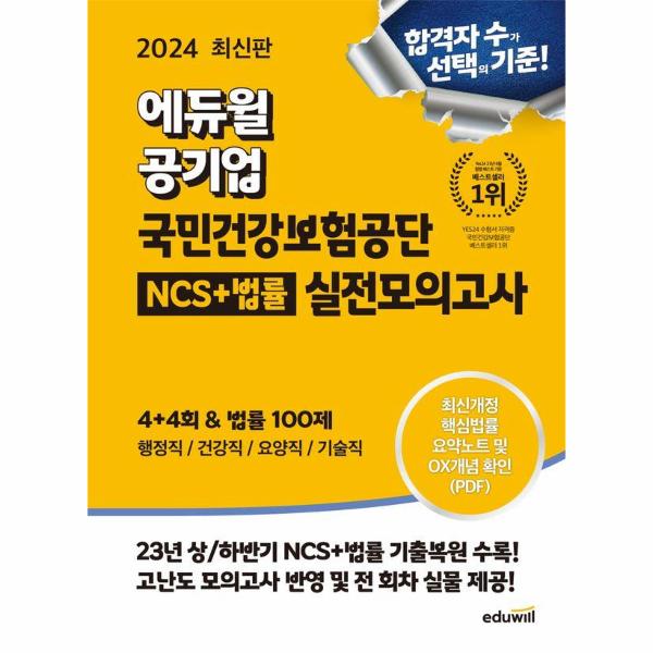 2023년 5월, 10월에 시행된 필기시험의 NCS 직업기초능력 응용모듈(60문항과 국민건강보험법/노인장기요양보험법(각 20문항을 복원한 기출복원 모의고사를 수록하여 최신 필기시험의 출제 경향 및 유형을 익힐 수 있도록 하였다.
