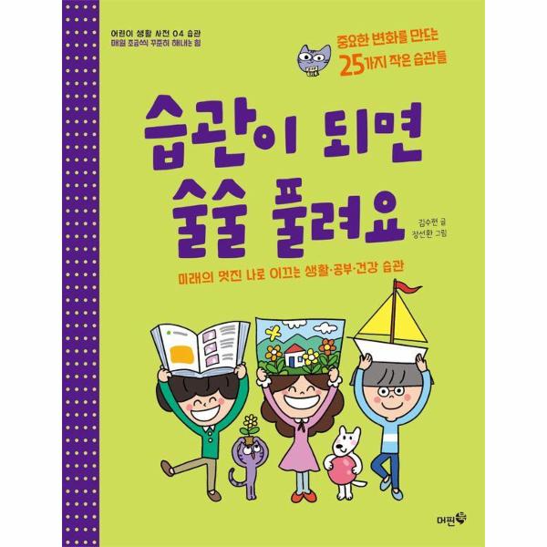 《습관이 되면 술술 풀려요》는 나쁜 습관은 뻥 날리고 좋은 습관을 기르고 싶은 어린이를 위한 유쾌한 자기계발서예요. 누구나 공감할 만한 일상 속 습관 고민을 퀴즈로 풀면서 어떤 습관이 나의 일상에 활력과 행복을 주는지 찾아보도록 구성되어 있어요. 그런 다음 생활, 언어, 공부, 건강에 관한 좋은 습관이 왜 중요한지 다정히 조언하고, 이 습관들이 몸에 밸 수 있도록 다양한 활동을 함께 제시해요. 이 과정에서 습관의 중요성을 새기고, 좋은 습관과 마음가짐을 내 것으로 만들기 위해 차근차근 노력하는 자세도 배울 수 있어요.