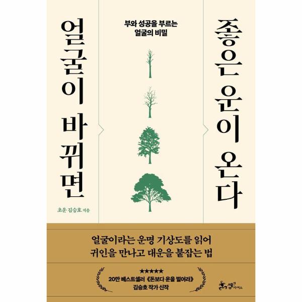 20만 독자의 사랑을 받은 《돈보다 운을 벌어라》의 저자 초운 김승호 선생이 신작 《얼굴이 바뀌면 좋은 운이 온다》에 ‘부와 성공을 부르는 얼굴의 비밀’을 공개했다. 김승호 작가는 이 책에서 “얼굴은 가장 정확한 운명 기상도”라고 단언한다. 슈퍼컴퓨터의 일기예보나 의사들의 기대여명 예측처럼, 사람의 운명도 얼굴의 변화를 통해 미리 짐작할 수 있다는 말이다. 얼굴은 세월에 따라 변할 수밖에 없고 또 많이 변할수록 좋다고 한다. 그만큼 운명에 활력이 있다는 뜻이기 때문이다. 이 책은 얼굴의 체계를 삼재(천지인와 오행(목화토금수으로 나눠 소개한 후, 눈·코·입·귀·턱·이마·뺨 등 각각의 생김새와 변화가 의미하는 바를 상세하게 알려준다. 그리고 인간관계에 관한 8가지 질문, 미래를 예측할 수 있는 8가지 질문을 통해 나에게 다가온 부와 성공을 끌어당기는 방법을 소개한다. 성공하는 사람들은 얼굴을 읽어 운명을 고친다. 나쁜 운을 떨쳐버리고 어려운 시기에 새로운 운을 일으켜야 한다면, 그 첫걸음은 얼굴을 살펴 내 운명의 길흉화복을 먼저 파악하는 일이 아닐까?