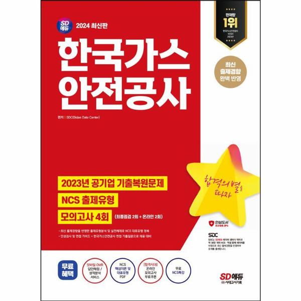 (주SD에듀에서는 2024년 한국가스안전공사 채용을 위하여 맞춤형 문제로 구성한 『2024 최신판 SD에듀 한국가스안전공사 NCS+최종점검 모의고사 4회+무료NCS특강』을 출간하였다. 공사공단 기출유형을 파악할 수 있도록 2023년주요 공기업 NCS 기출복원문제를 수록하였으며, 직업기초능력평가 출제유형분석 + 실전예제로 NCS를 완벽 학습할 수 있도록 하였다. 또한 최신 출제경향을 반영한 최종점검 모의고사를 2회분 수록하여 시험 전 자신의 실력을 점검할 수 있도록 하였으며, 한국가스공사 채용 가이드와 면접 기출질문을 통해 채용의 모든 과정을 대비할 수 있도록 하였다. 끝으로 온라인 모의고사 2회분을 제공하여 필기시험을 보다 꼼꼼히 준비할 수 있도록 하였다.
