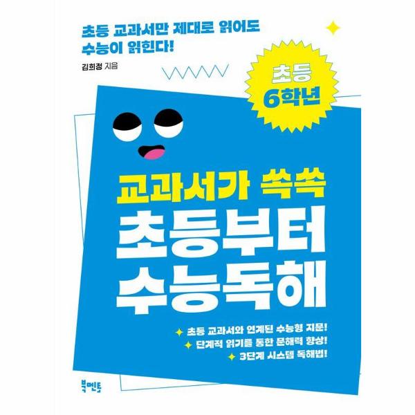 글을 잘 읽으려면 어휘를 많이 알아야 하고 문장 구조와 글의 맥락을 잘 파악해 글쓴이가 말하고자 하는 의도를 찾아내야 합니다. 《교과서가 쏙쏙 초등부터 수능 독해 - 초등 6학년》 편은 초등 교과서 지문과 수능 모의고사 지문을 재구성했습니다. 어린이들이 가장 자주 접하는 초등 교과서는 꼭 익혀야 하는 기초 어휘와 좋은 문장, 엄선된 내용의 바탕글이 담긴 가장 훌륭한 문해력 교재입니다. 따라서 교과서만 잘 읽어도 전반적인 독해 능력을 기를 수 있을 뿐만 아니라 다양한 유형의 비문학 지문을 다루는 수능