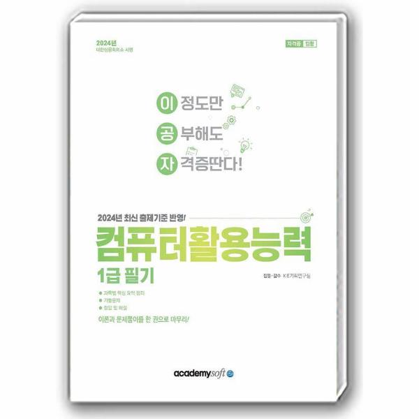 과목별 핵심 요약 정리 : 시험에 자주 출제되는 핵심적인 내용들을 과목별(컴퓨터 일반, 스프레드시트 일반, 데이터베이스 일반로 정리하여 주요 내용만 빠르게 학습할 수 있도록 구성하였습니다.