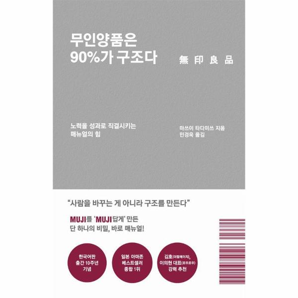 ‘이제 이 회사도 끝인가?’라는 분위기가 만연했을 즈음, 사장으로 취임한 마쓰이 타다미쓰가 가장 먼저 한 일은 바로 조직의 구조를 바꾸는 것이었다. 도서출판 푸른숲에서 한국어판 출간 10주년을 기념해 리커버 에디션으로 펴낸 《무인양품은 90%가 구조다》는 무인양품의 본사인 양품계획 전 회장 마쓰이 타다미쓰가 무인양품의 경영 비밀을 직접 밝힌 최초의 책으로, 그가 사장에 취임한 2001년부터 회장으로 재직한 시기까지 조직의 구조와 풍토를 바꾸면서 어떻게 성장해왔는지 소개한다.