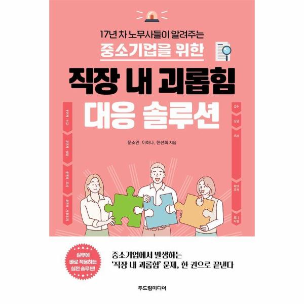 이 책의 저자들은 2007년 공인노무사 시험에 합격한 17년 차 공인노무사들이다. 그동안 사기업과 공공기관 등 다수의 기관에서 인사 실무를 경험했고, 관련 노하우를 쌓았다. 특히 2019년 직장 내 괴롭힘을 금지하는 근로기준법 시행 이후에는 관련 자문, 조사, 사건 대리, 교육 등을 진행했다. 많은 사업장의 직장 내 괴롭힘 사건을 조사한 결과, 공공기관이나 대기업은 전담부서, 관련 규정, 매뉴얼 등을 마련해두고 잘 대처하고 있었다. 그러나 중소기업은 그렇지 않아 관련 문제가 발생해도 제대로 대처하지 못하고 방치하는 경우가 많았다. 따라서 중소기업에서 직장 내 괴롭힘 신고가 접수되었을 때, 실무 관점에서 어떻게 대응해야 할지 쉽게 안내하기 위해 이 책을 집필한 것이다.