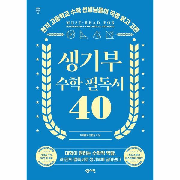 《생기부 수학 필독서 40》은 타 교과에 비해 상대적으로 활발하지 못한 수학의 생기부 관련 활동을 한층 풍성하고 창의적으로 만들기 위해, 현직 고등학교 수학 교사들이 40권의 필독서 및 그와 연계한 독후 활동을 안내하는 책이다. 저자인 교사들이 직접 읽고 학생들과 활용해 본 경험을 바탕으로 현행 고등학교 재학생이 읽기 적당한 수준의 난이도와 구성, 그리고 무엇보다 다양한 후속 활동과 탐구로 이어질 수 있는 책들로만 선별했다.