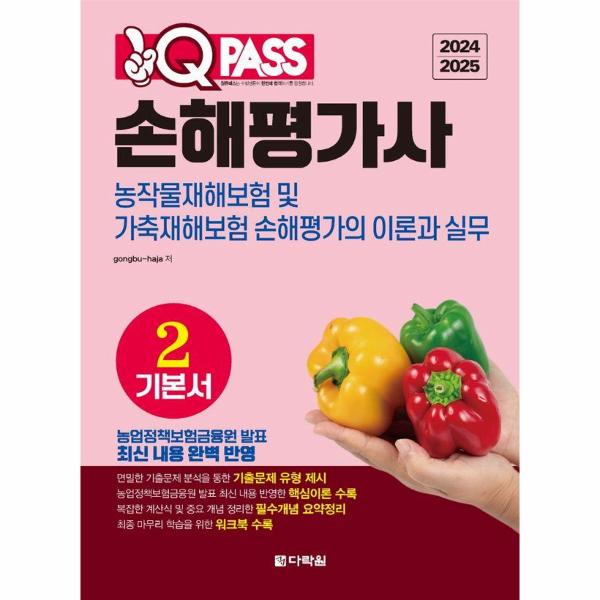 손해평가사는 농작물재해보험에 가입한 농지 또는 과수원에 보상하는 재해로 인하여 피해를 입은 경우, 피해사실을 확인하고, 보험가액 및 손해액을 평가하는 업무를 하는 사람을 말한다. 우리나라에서는 2015년부터 손해평가사 국가자격제도를 도입해서 운영 중에 있다. 공인중개사 자격증과 함께 대표 노후 대비 자격증인 손해평가사는 은퇴나 정년을 앞둔 50 ∼ 60대 뿐 아니라 불안한 노후를 일찍 대비하려는 30 ∼ 40대 사이에서도 해마다 인기가 높아지고 있다. 2019년 4천 명이 채 되지 않던 1차 시험 응시자 수는 2023년에는 1만 5천 명이 넘는 등 시장은 날이 갈수록 늘어가고 있는 추세이다. 이번에 출간하는 <2024/2025 원큐패스 손해평가사 기본서 2 농작물재해보험 및 가축재해보험 손해평가의 이론과 실무>는 서술형인 2차 시험을 유기적으로 학습하여 최고의 효과를 낼 수 있도록 ‘기출유형 확인하기’, ‘기본서 내용 익히기’, ‘핵심내용 정리하기’, ‘워크북으로 마무리하기’ 로 단계별 구성을 하였다.
