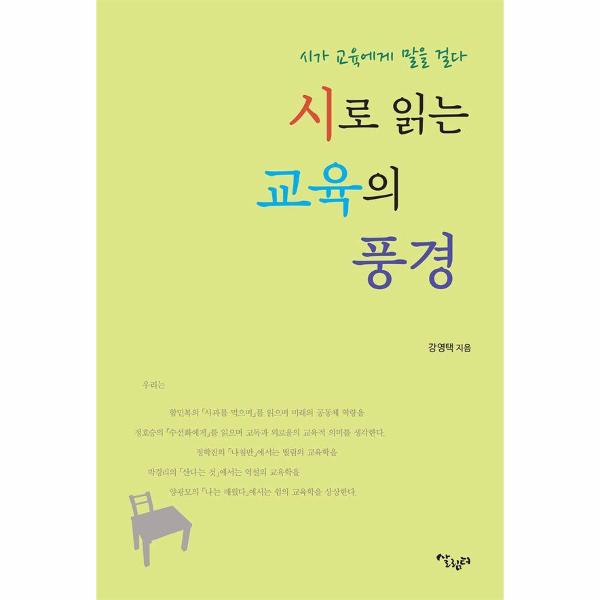 『시로 읽는 교육의 풍경』에는 교육학자로, 국어 교사로 문학과 함께해 온 저자의 시적 교육론이 담겨 있다. 저자는 13편의 시를 깊이 읽고 음미하며 그 시어의 이미지를 분석하고, 그 은유적 의미에 담긴 교육과 교육학의 아이디어를 추출한다. 그리하여 “시를 통해 인간의 성장에 대해 말을 건네며, 배움을 통해 아름다움의 신비에 관해 생각해 보게” 한다.