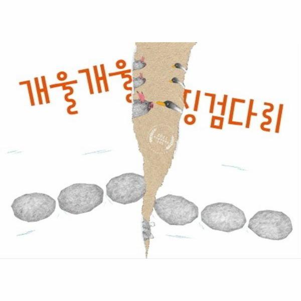 거북과 왜가리가 오묘하게 눈을 마주치는 사이, 한쪽 끝에서 오리 한 마리가 꽥꽥거리며 징검다리를 건너옵니다. 그와 비슷한 때, 또 다른 쪽에서는 돼지 한 마리가 꿀꿀거리며 징검다리를 건너옵니다. 말할 것도 없이, 둘은 한가운데서 마주칠 수밖에 없는 운명입니다. 엎친 데 덮쳤네요. 오리 뒤에 오리, 돼지 뒤에 돼지 여러 마리가 꽥꽥 꿀꿀 건너옵니다. 그 사이 왜가리는 나 몰라