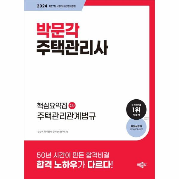 [2024 박문각 주택관리사 핵심요약집 2차 주택관리관계법규]는 2024년 제27회 주택관리사(보 자격시험을 대비하여 최근 개정된 법령을 빠짐없이 반영하였고, 많은 분량으로 인한 수험생들의 고충을 이해하여 출제경향을 파악하고 많은 법령의 내용 중 핵심적인 부분을 요약하여 시험을 준비하는 수험생들이 보다 쉽게 내용을 이해하고 정리하는 데 도움을 주기 위해 출간하였습니다.본서가 시험의 최종합격이라는 목표를 향해 매진하는 수험생 여러분의 든든한 동반자가 되기를 바라며, 합격의 기쁨이 함께 하시기를 기원합니다.