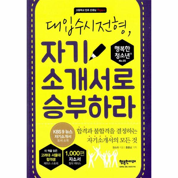자기소개서를 설명할 때, ‘백 번 듣는 것보다 한 번 보는 것이 낫다’는 말이 있다. 이 책은 1,000여개의 자기소개서 첨삭 사례를 기반으로 한국대학교육협의회가 정한 자기소개서 공통 문항에 대한 완벽한 해설서이다. 자기소개서를 쓰려고 할 때에 ‘공통 문항’에 대한 이해가 쉽게 다가오지 않는다. 따라서 문항이 요구하는 것과는 거리가 먼 자기소개서를 쓰기 일쑤이다.이 책은 문항 설명에 대해 더욱 풍부한 설명을 덧붙인다. 이와 더불어 설명에 부합하는 예시와 부합하지 않는 예시들을 함께 제시한다. 그럼으로써 학생들이 자기소개서를 직접 작성할 때 쉽게 적용하여, 최상의 자기소개서를 작성하는 데에 도움을 준다. 자기소개서를 미리 써 본 학생에게는 자신의 자기소개서를 스스로 평가할 수 있는 기준을 제공한다.