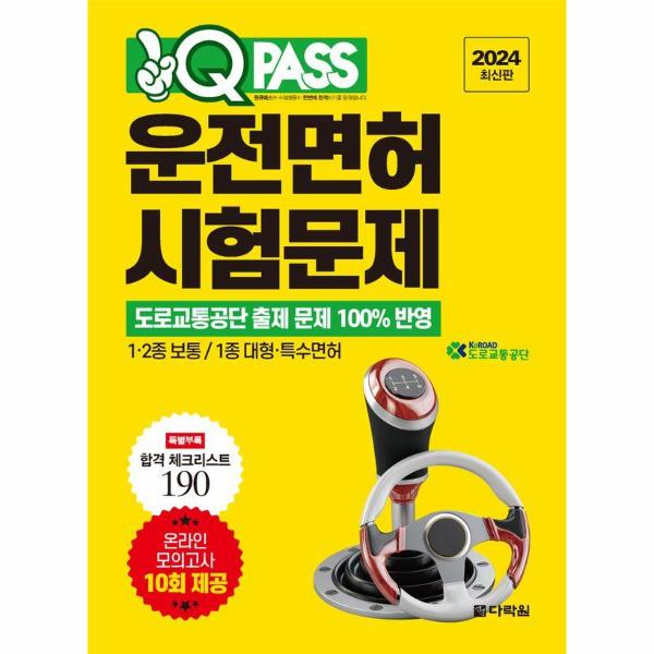 가장 최신 문제들로 구성된 원큐패스 운전면허 시험문제 책으로 한번에 합격하자.