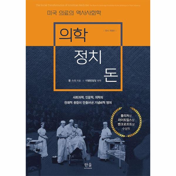 폴 스타 프린스턴대학 교수의 역작 『의학, 정치, 돈: 미국 의료의 역사사회학』의 원서 개정판이 우리말로 출간되었다. 이 책은 18세기부터 오늘날까지 미국 의료의 역사적 변화상을 사회과학, 인문학, 의학의 융합적 사유의 지평에서 분석한다. 1982년 미국에서 초판이 출간되어 퓰리처상(논픽션 분야, 라이트밀스상(사회학 분야, 밴크로프트상(역사학 분야을 두루 수상한 현대의 고전이다. 이번에 우리말로 출간되는 책은 1982년의 초판을 기반으로 2017년에 ‘에필로그’가 추가된 원서 개정판을 번역한 것이다.