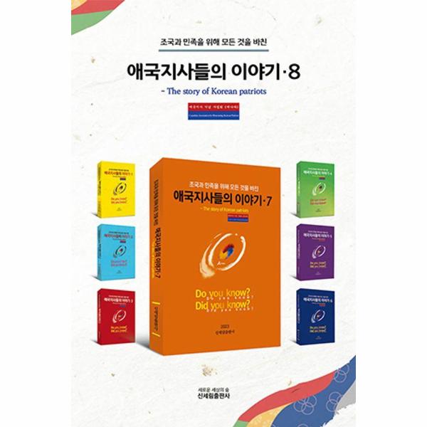 『애국지사들의 이야기·8』의 표지는 지금까지 나온 일곱 권의 책들과는 판이하게 다르게 도안했다. 이미 출판되어 배포된 일곱 권의 책들의 표지 색깔은 무지개 색인 빨강, 주홍, 노랑, 초록, 파랑, 남, 보라색이다. 하지만 이번 책의 표지는 바탕은 횐 색이고, 가운데 제7권이 자리 잡고 그 주위를 1권부터 6권이 둘러싸게 도안했다. 표지뿐만 아니라 내용도 읽는 분들에게 새롭다는 느낌을 줌과 동시에 애국정신을 고취시킬 수 있는 글들로 구성하기 위하여 최선을 다했다.