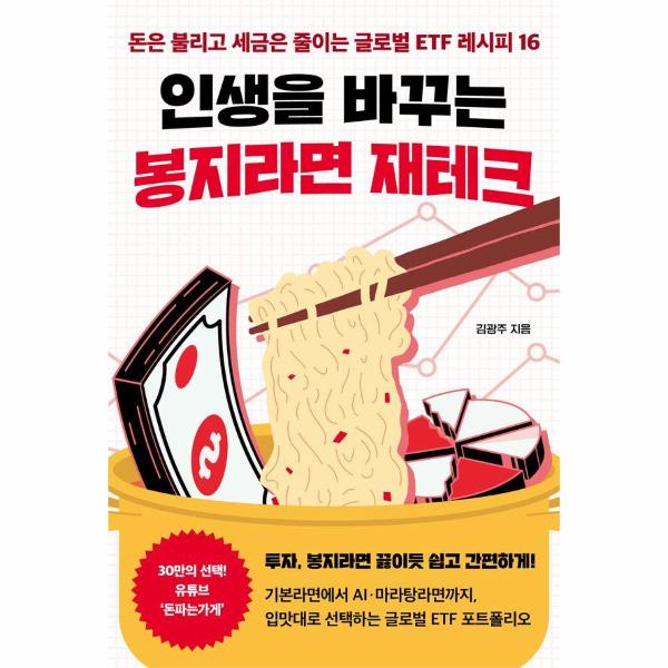 이 책은 자본주의 성장의 평균에 투자하는 글로벌 ETF를 중심으로, 독자들의 입맛에 따라 쉽게 선택 가능한 봉지라면 레시피를 제시한다. 기본라면인 미국의 S&P500 지수를 추종하는 ETF를 중심으로 수제라면, 조금 매운라면, 매운라면, 순한라면, 조금 순한라면, 거위라면, 마라탕라면, AI섞어라면, 셰프라면 등 10개의 봉지라면에 총 16개의 레시피가 쉽고 간단하게 설명되어 있다.