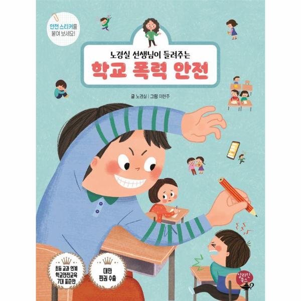 총 10권의 시리즈 중 그 네 번째 권인 ‘학교 폭력 안전’은 언어 및 신체 폭력, 사이버 폭력 등 학교 또는 친구들 사이에서 일어나는 폭력의 위험성에 대해 이야기하고 있습니다. 또한 안전 스티커를 통해