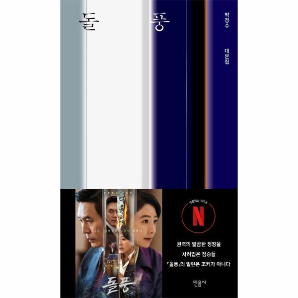 넷플릭스 시리즈 「돌풍」 대본집이 민음사에서 출간되었다. 지난 6월 말, 넷플릭스를 통해 공개된 12부작 드라마 「돌풍」은 눈이 다 따라가지 못할 정도로 빠른 전개, 뇌가 하는 예측을 보란 듯이 벗어나는 반전의 반전, 귀가 아니라 가슴에 꽂히는 대사, 저마다 다채롭게 타락한 권력자들에 대한 묘사까지… 한 번 보기 시작하면 밤샘도 불사하게 만드는 몰입감으로 올여름 한국 사회에 ‘돌풍’을 일으키고 있다.