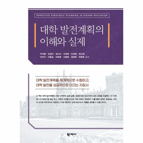 현재 우리나라 대학교육은 큰 전환점에 서 있다. 학령인구의 감소, 지방소멸의 위기, 대학 간 경쟁의 격화, 그리고 대학 특성화의 부재는 대학교육이 당면한 중대한 도전이다. 이러한 상황에서 대학이 지속가능한 발전을 이루려면 현실을 정확히 인식하고, 미래를 향한 체계적이고 실질적인 발전계획을 수립해야 한다. 『대학 발전계획의 이해와 실제』는 이러한 과정을 돕기 위해 준비한 책이다. 대학이 대학 발전계획을 자체적으로 수립하고 실제 대학 발전에 지침이 되도록 하자는 의도에서 출발했다.