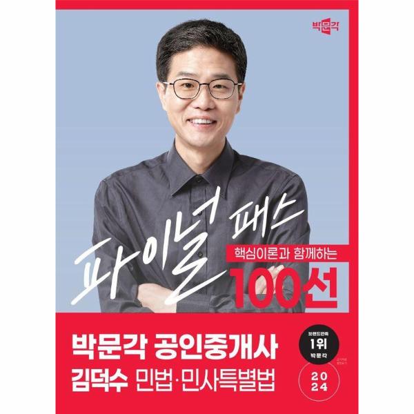 [2024 박문각 공인중개사 김덕수 파이널 패스 100선 1차 민법·민사특별법]은 2024년 제35회 공인중개사 자격시험을 대비한 최종 마무리 문제집으로, 관록 있는 저자가 현장에서의 경험을 바탕으로 수험생들의 고충을 이해하고, 시험을 준비하는 수험생들이 보다 쉽게 내용을 이해하고 파악하는 데 도움을 주기 위하여 출간하였습니다. 본서가 수험에 조금이나마 도움이 되기를 간절히 바라며 수험생 여러분 모두가 합격에 이르기를 바랍니다.