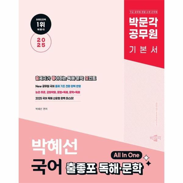 『2025 박문각 공무원 박혜선 국어 출좋포 독해·문학』은 인사혁신처의 출제 기조 전환 발표에 따라 새롭게 출간된 공무원 국어 독해·문학 기본서입니다.