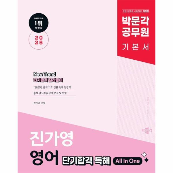 『2025 박문각 공무원 New Trend 진가영 영어 단기합격 독해 All In One』은 9급 공무원 시험대비 영어 독해 기본서로, 2025 출제 기조 전환에 따라 9가지로 출제될 것으로 예상되는 독해 영역을 유형별로 모두 다루었다. 따라서 2025년 시험대비에 가장 적합한 교재이다. 또한 본서에 수록되어 있는 Pen Checking을 통해 지문 안에서 답을 찾는 방법을 체득하면 실전 문제에도 적용하여 문제를 풀 수 있는 능력을 기르게 될 것이다.