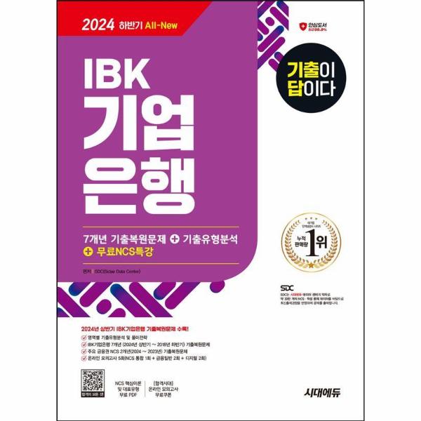 IBK기업은행은 인재를 채용하기 위해 필기시험을 시행하여 지원자가 업무에 필요한 역량을 갖추고 있는지 평가한다. 이에 시대에듀에서는 IBK기업은행 필기시험을 준비하는 수험생들에게 좋은 길잡이가 되어 주고자 『2024 하반기 시대에듀 All-New 기출이 답이다 IBK기업은행 필기시험 7개년 기출+무료NCS특강』을 출간하게 되었다. 기출유형 뜯어보기를 통해 출제되는 NCS 영역의 대표유형을 학습할 수 있게 하였고, IBK기업은행의 2024년 상반기부터 2018년 하반기까지 총 7개년 기출복원문제를 수록하여 변화하는 출제경향을 파악할 수 있도록 하였으며, 2024년부터 2023년까지 시행된 2개년 주요 금융권 NCS 기출복원문제를 수록하여 다양한 출제유형에 대비할 수 있도록 하였다. 또한 NCS 기출풀이 및 합격전략 특강, NCS 핵심이론 및 대표유형 PDF 등의 특별혜택이 제공된다. 따라서 책 한 권으로 IBK기업은행 필기전형에 필요한 최신유형과 빈출유형, 핵심개념을 모두 정리할 수 있을 것이다. 본서가 IBK기업은행 필기시험을 준비하는 여러분 모두에게 합격의 기쁨을 전달하기를 진심으로 기원한다.