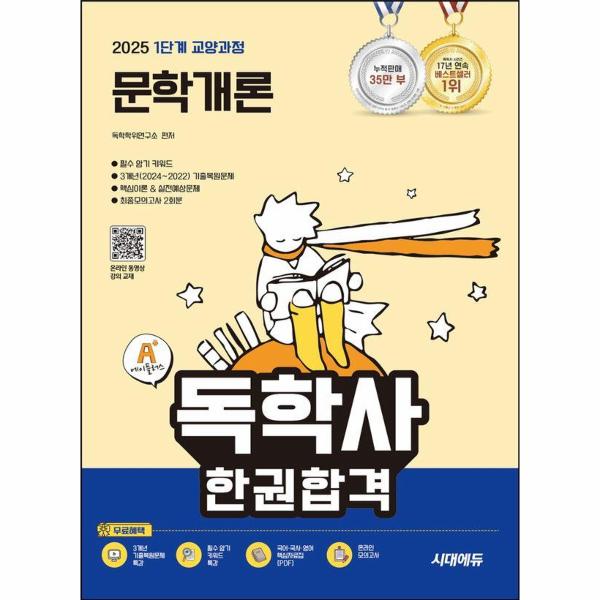 독학사 시험은 국가평생교육진흥원에서 공개하는 평가영역을 기반으로, 개념 위주의 문제들이 출제되고 있습니다. 따라서 평가영역을 바탕으로 많은 분량의 이론을 한정된 시간 내에 효율적으로 학습해야 합니다. 본 교재는 독학사 1단계 시험 전용 수험서로, 시간 대비 학습의 효율성을 높이기 위해 방대한 학습 분량을 최대한 압축하고자 하였으며, 출제 유형을 반영한 문제들로 구성하도록 노력하였습니다.