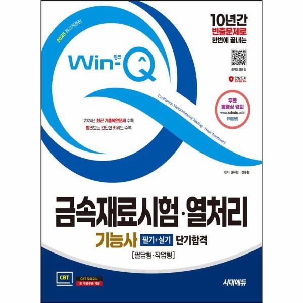 기능사 시험은 만점을 받는 것이 목표가 아니라 평균 60점 이상만 받아 합격하는 것에 의의가 있다. 그래서 시험에 꼭 나오는 부분만 중점적으로 공부할 수 있도록 하는 것이야말로 합리적이고 계획적인 시험 대비 준비서가 갖추어야 할 조건이라고 할 수 있는데 바로 Win-Q 금속재료시험·열처리기능사가 그 조건에 정확히 부합한다고 할 수 있다.