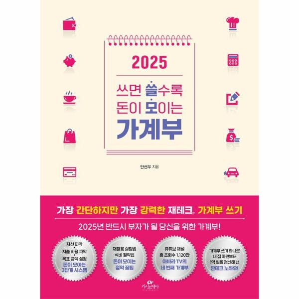 한 번 쓰기 시작하면 매년 찾게 되는 가계부의 스테디셀러 《쓰면 쓸수록 돈이 모이는 가계부》가 더욱 업그레이드 되어 출간되었다. 가계부를 처음 쓰는 사람도 적응하기 쉽도록 월초 가계부 예산 작성법, 주간 가계부 작성법, 월말 가계부 결산 작성법과 같은 활용법을 자세히 설명했고, 매년 쓸모 가계부를 쓰고 있는 독자들의 생생한 후기까지 확인할 수 있다. 저자는 이번 《2025 쓰면 쓸수록 돈이 모이는 가계부》에서 대출을 빠르게 갚을 수 있었던 자신만의 전략을 알려주며 많은 사람이 빚으로부터의 자유를 얻는 데 도움을 주고자 했다.