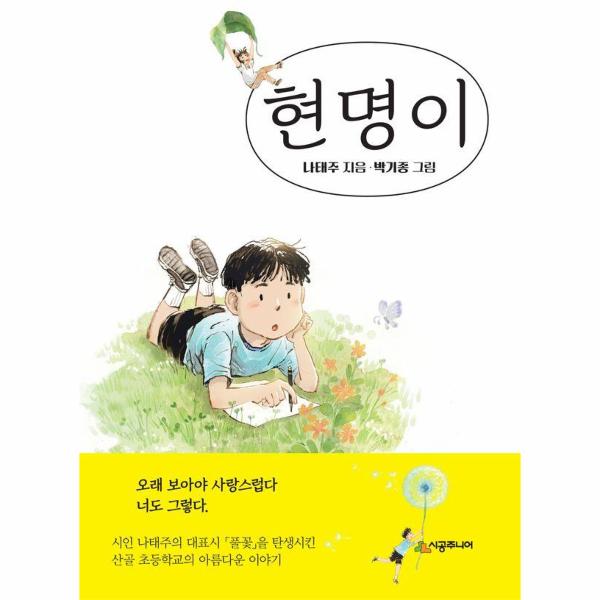 나태주 시인은 “시인에게는 ‘바로 그 한 편의 시’가 있어야 한다.”고 말한다. 시인을 대표하고 상징하는 한 편의 시로 인해 시인의 시 세계와 독자 대중이 연결될 수 있다는 뜻이다. 나태주 시인에게 ‘바로 그 한 편의 시’는 당연히 「풀꽃」이다. 시인은 자신을 대중의 관심과 사랑을 받는 ‘풀꽃 시인’으로 자리매김하게 해 준 「풀꽃」을 기념하기 위해 오래전부터 이 시에 얽힌 이야기를 쓰고 싶어 했고, 그 오랜 바람이 결실을 맺은 것이 바로 이 책 『현명이』다.