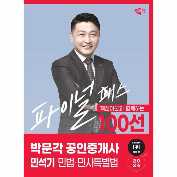 [2024 박문각 공인중개사 민석기 파이널 패스 100선 1차 민법·민사특별법]은 2024년 제35회 공인중개사 자격시험을 대비한 최종 마무리 문제집으로, 관록 있는 저자가 현장에서의 경험을 바탕으로 수험생들의 고충을 이해하고, 시험을 준비하는 수험생들이 보다 쉽게 내용을 이해하고 파악하는 데 도움을 주기 위하여 출간하였습니다. 본서가 수험에 조금이나마 도움이 되기를 간절히 바라며 수험생 여러분 모두가 합격에 이르기를 바랍니다.