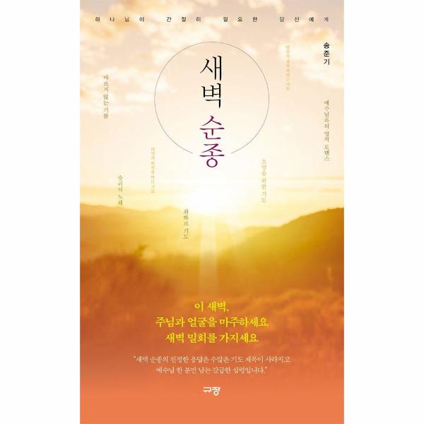 새벽은 하나님께 집중하여 소명 의식을 새롭게 다지는 운명의 갈림길, 결투를 앞둔 검사가 새벽에 칼을 벼리듯 그날의 영적 전쟁에 대비해 기도로 말씀을 벼리는 시간이다. 13쪽